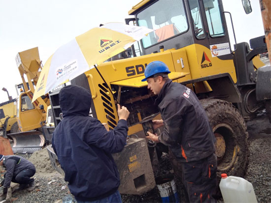During the visit, the service staff made three-in-one inspection experience. SDLG provides free-of-charge machine maintenance for clients, free-of-charge maintenance training for operators and holistic troubleshooting for machines to eliminate potential problems.