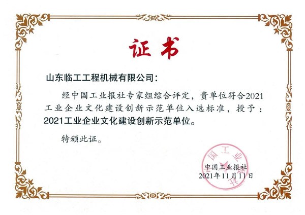 其中,山东long8-龙八(国际)唯一官方网站工程机械有限公司凭借独具特色的企业文化建设成果,被评选为“2021年工业企业文化建设创新示范单位”。